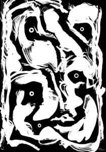 “ Für mich als Künstler ist der Schaffensprozess oft sehr spannend. Man erwacht mit einer Idee und beginnt. Doch oft endet man ganz woanders. Mehrfarbige Acrylmalerei auf Folien befriedigten mich nicht. Erst die digitale Umwandlung in Graustufen führte zu diesem, für mich faszinierenden, ausdrucksstarken Ergebnis „